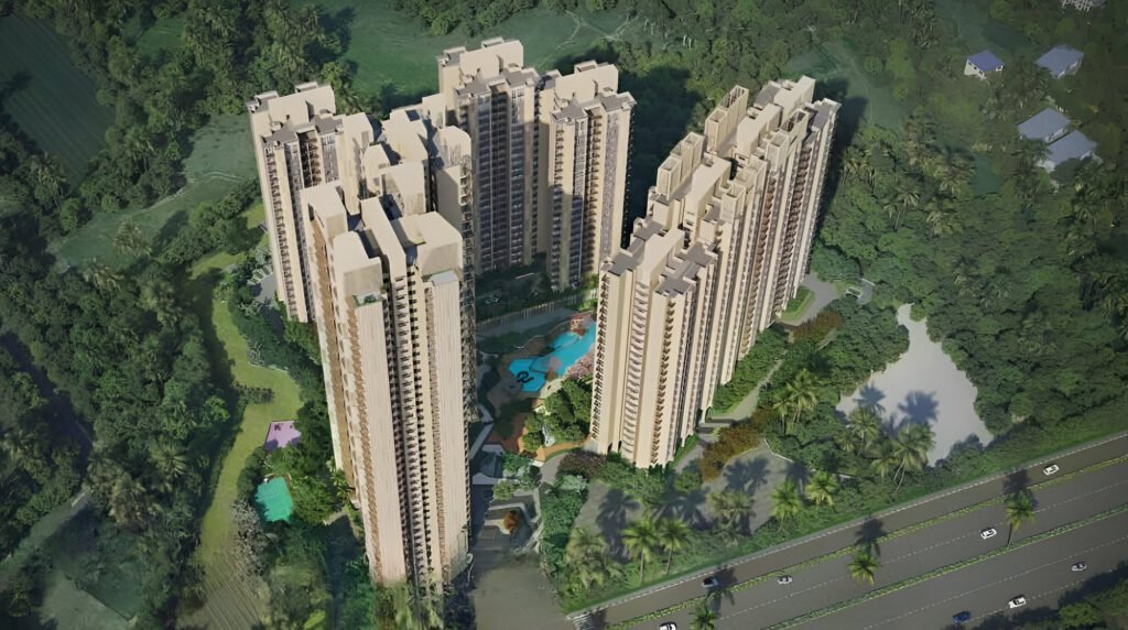 The project spans 6 acres, featuring 10 towers, 34 floors, and a total saleable area of 17.26 lakh sq. ft.