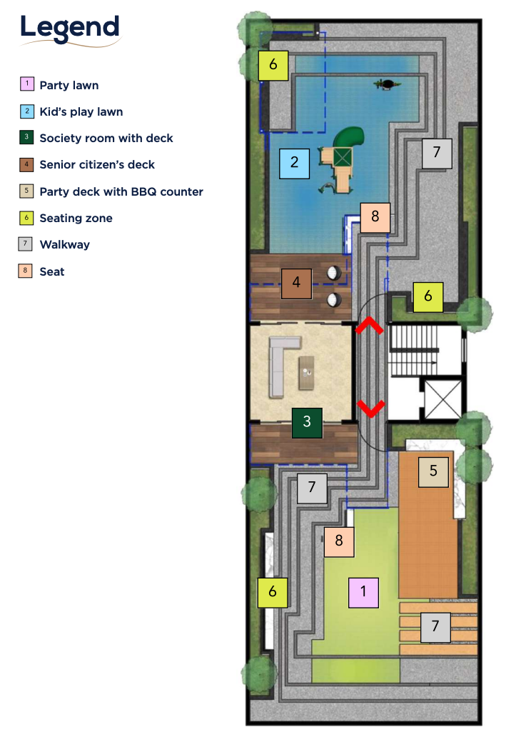 Children’s play area, landscaped park, terrace garden, and sit-out zones for relaxation and recreation.